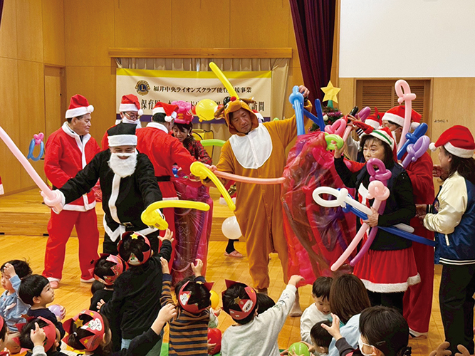 両保育園ともに1時間程度の滞在でしたが、バルーンアートの実演が始まると園児たちの大きな声や笑顔が会場に広がり、元気な姿に逆に勇気を頂いた事業となりました。まだ、災害の爪痕が残るなかで、心の不安を少しでも癒し新しい思い出作りに、そして福井中央ライオンズクラブの奉仕活動を認知していただく良い機会になったのではないかと思います。